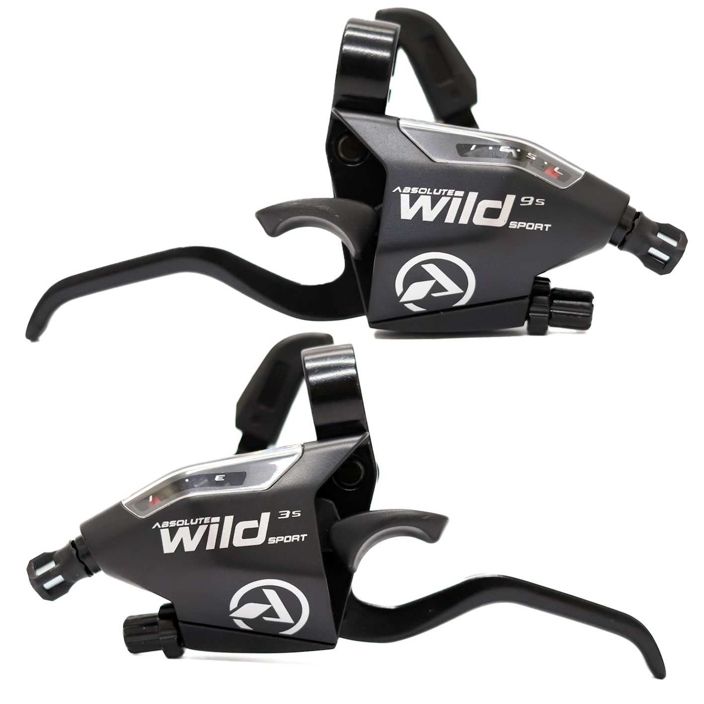 Alavanca Rapid-Fire Absolute Wild Sport 3x9V, Index, Preto, Maçaneta V-Brake, Alm/Nylon, C/Cabos de Câmbio e Freio, Ind Marcha, Comp Shimano, OEM