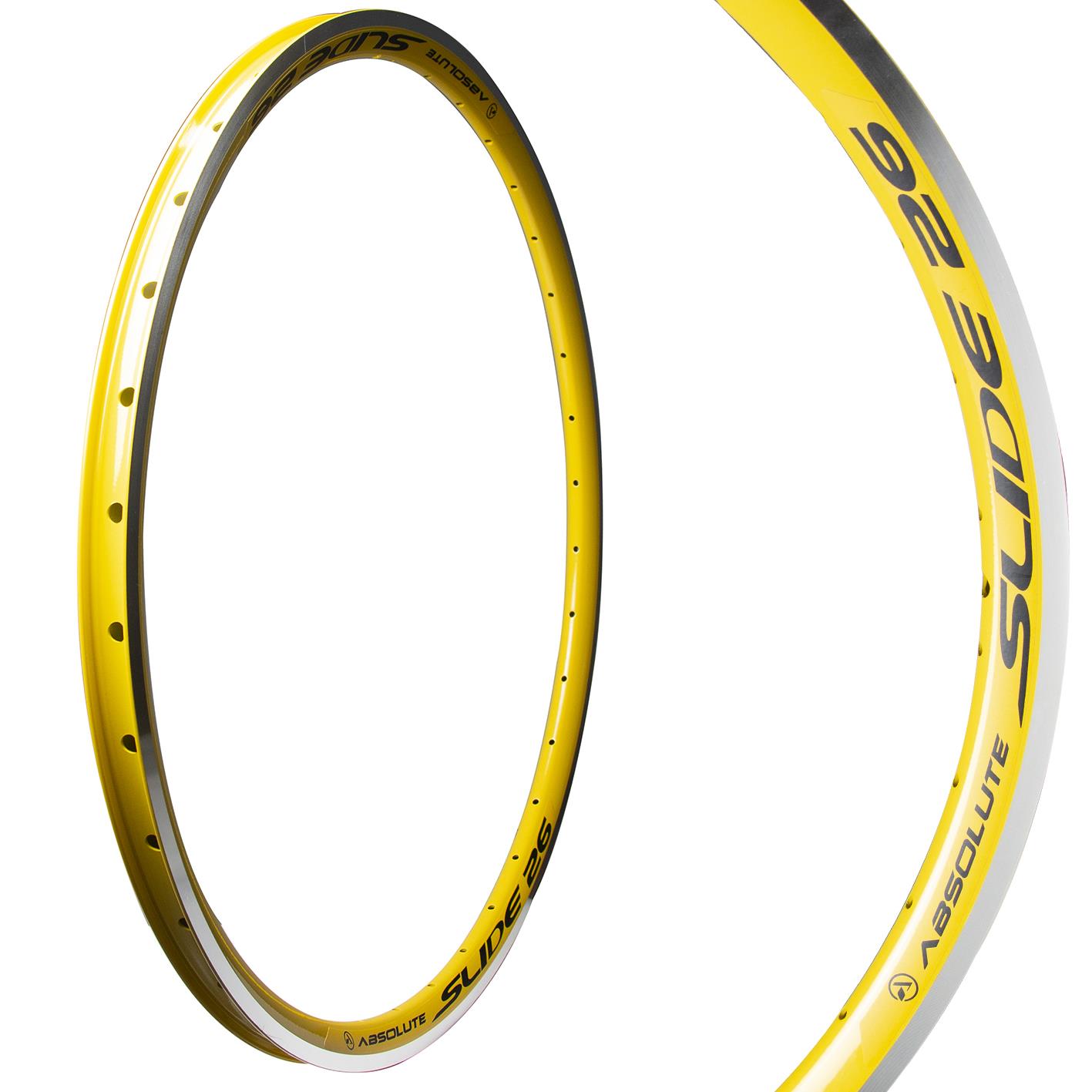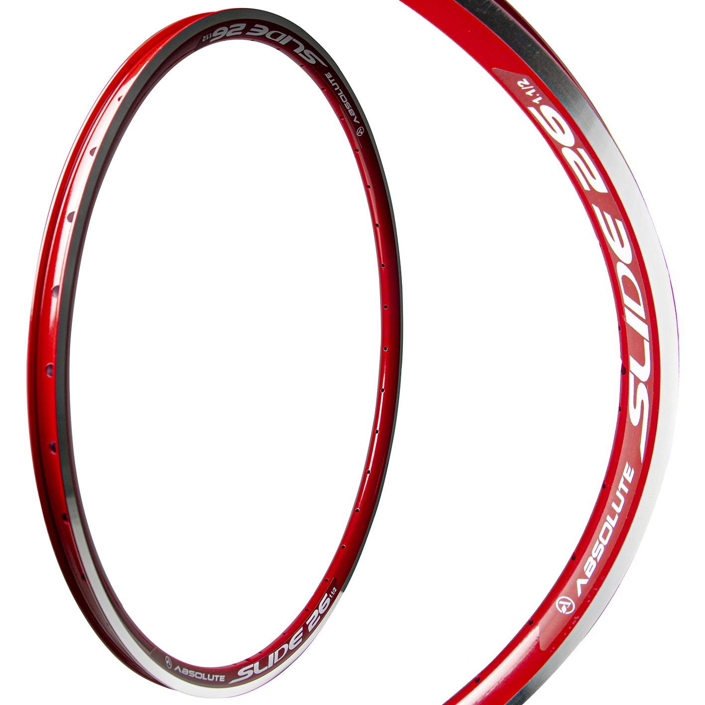Aro Absolute Slide V-Brake, em Alumínio, Variações: 16″ 16 furos preto, 20″ 36 furos, 24″ 36 furos, 26″ 36 furos, azul verniz, natural, preto, rosa, vermelho verniz, branco, violeta