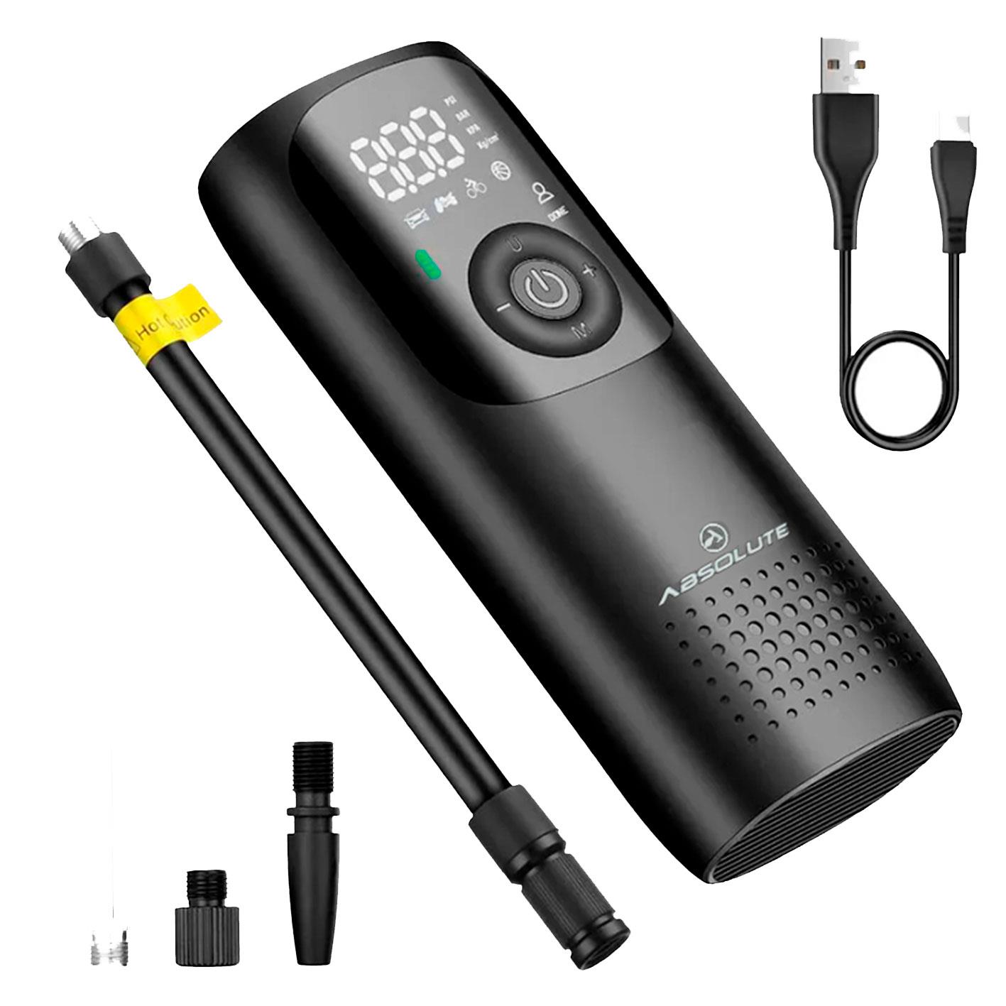 Bomba de ar elétrica portátil Absolute Wild, até 150 PSI, autonomia até 25 minutos, recarregável via USB, c/ display digital, programável