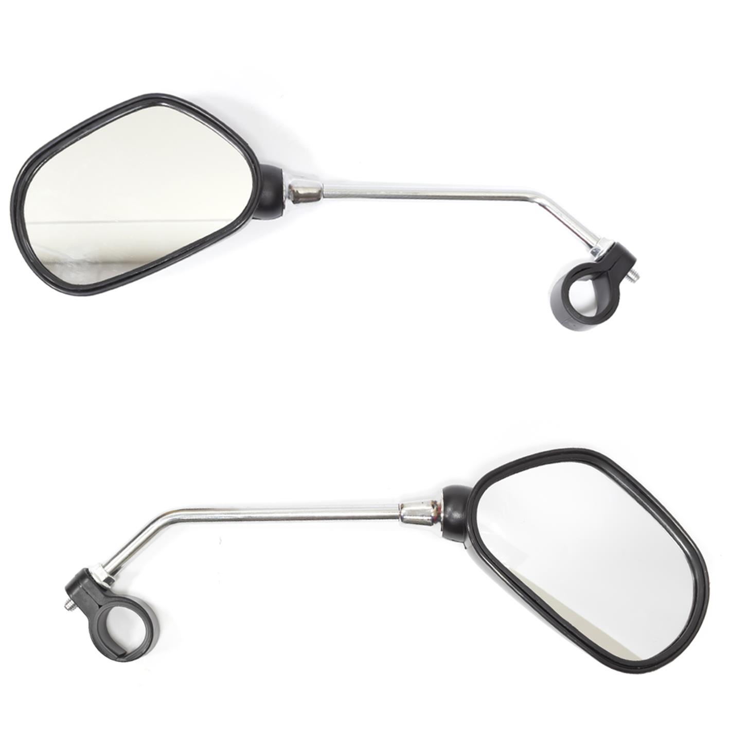 Espelho Retrovisor Retangular, Absolute JY-102, Lente de Vidro 11×7,5cm, Corpo Plastico Preto, Haste em Aco Cromada, Refletor, Abraçadeira 22,2mm