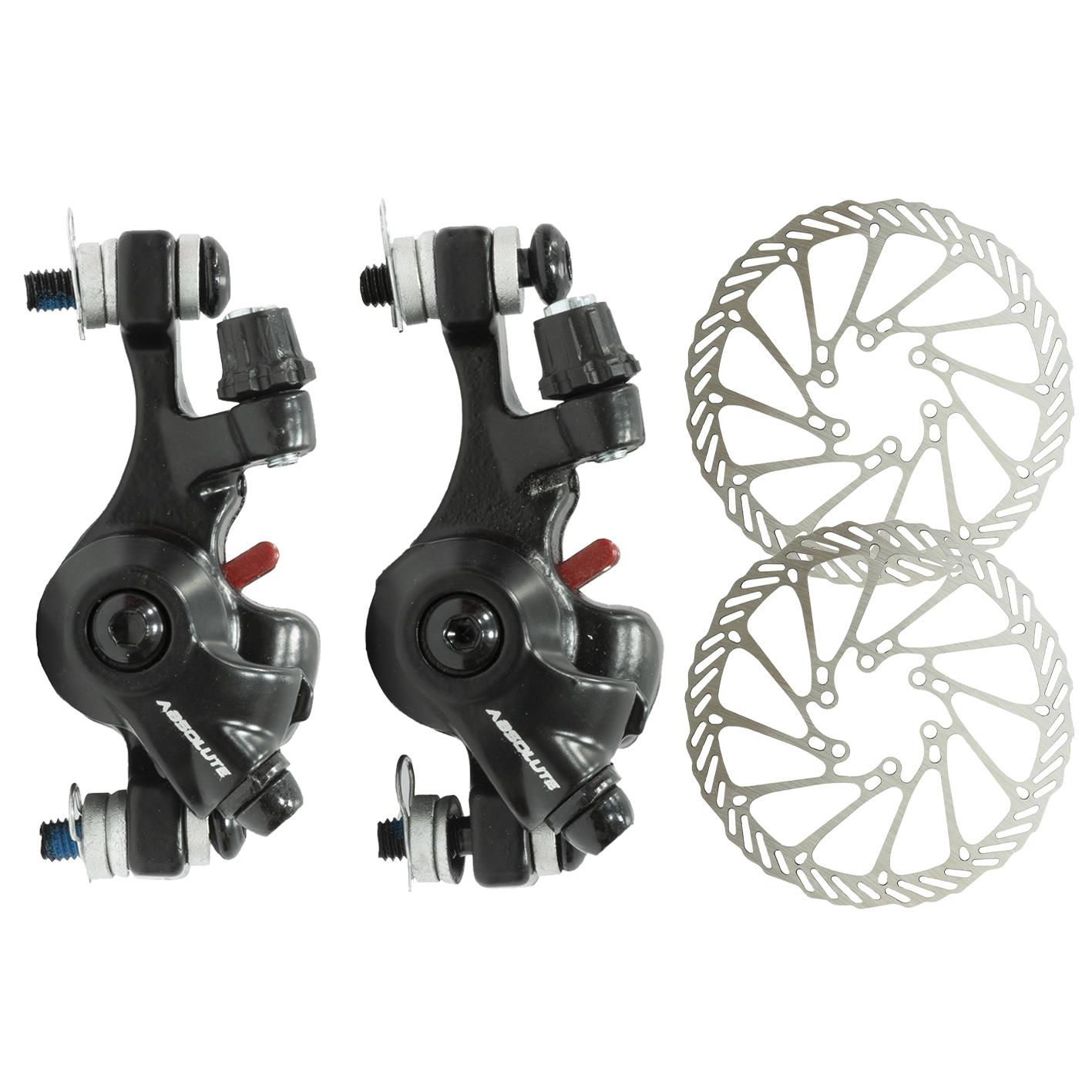 Freio A Disco Mecânico Absolute Dnt/Tras All Road, Preto, Post Mount, 2 Rotor 160mm, P/Estrada e Gravel, Compat Apenas C/Passadores Estrada Tipo Sti