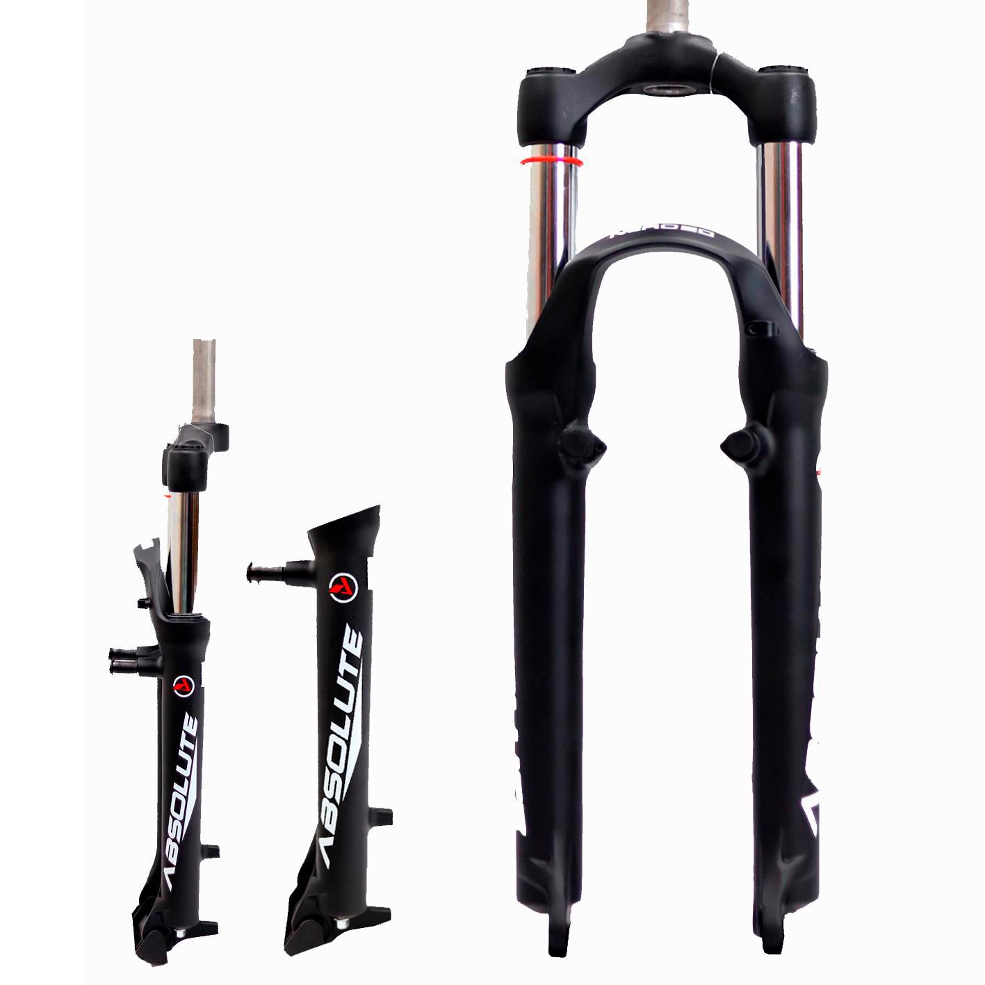 Garfo 26 Absolute Nero 30 Preto 80mm Standard (25.4×21.1) de rosca, Hastes 30mm em Aço, Canelas e Crown Aluminio, P/Disco/V-Brake, C/Ajuste Pré Carga