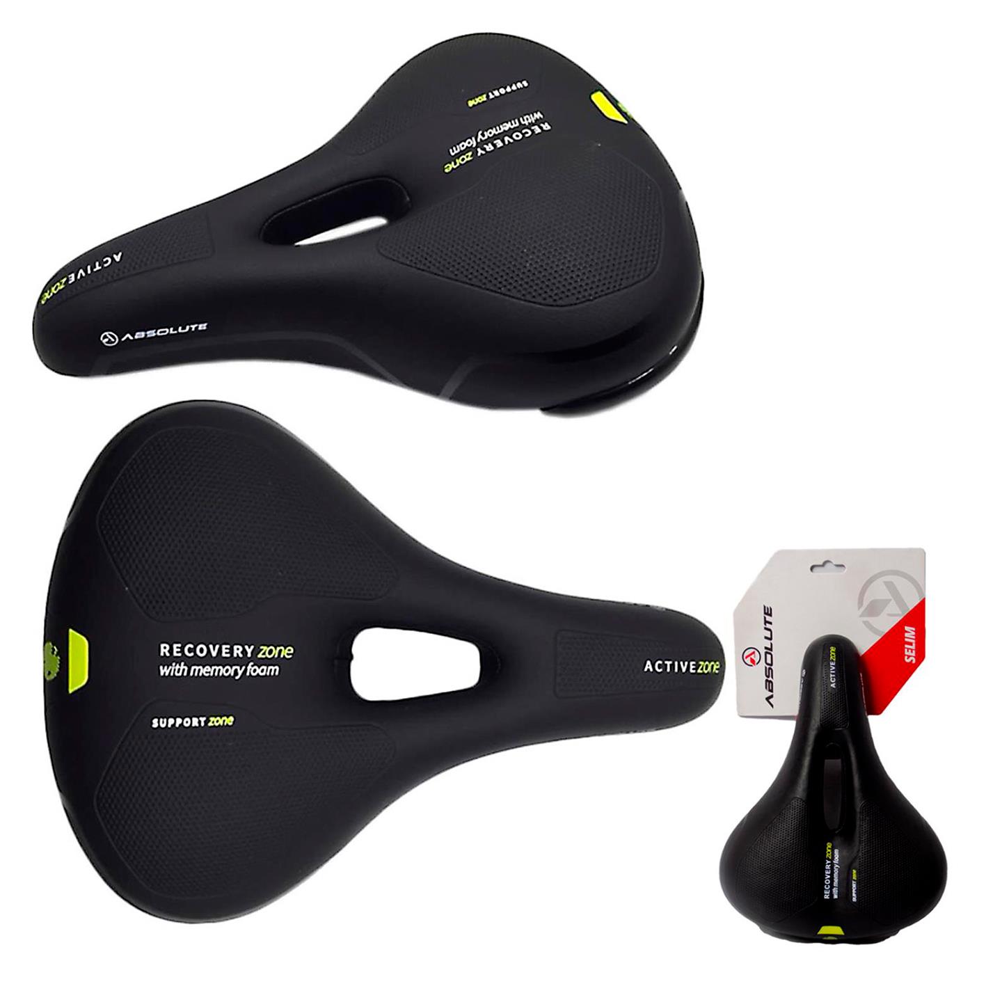 Selim Absolute Trekking Comfort Preto, 252x185mm, Vazado, C/Trilho aço, Tecnologia Memory Foam, C/Elastômeros